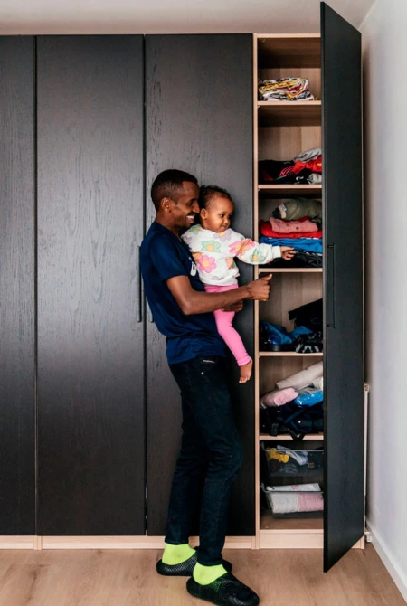 Uvnitř panuje neformální atmosféra. Obývací prostor je světlý a otevřený, s širokými dubovými prkny, která směřují váš pohled do zahrady. Zatímco Maryan nadšeně trénuje první krůčky, Bašír se usadí na pohovku. „Teď mám období odpočinku,“ říká. „V týdnu po maratonu musím co nejvíce odpočívat. I když nás děti stále budí v šest hodin ráno. Pro mě je domov nejdůležitější místo. Nepotřebuji žádný luxus. Když sedím tady na podlaze a dívám se, jak si moje děti hrají, tak jsem nejšťastnější.“